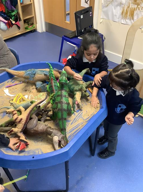 Outside, we have been digging for dinosaurs and playing dinosaur stomp.