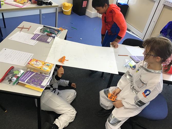 In science, we celebrated space day by creating our own Mars Rover! We created a maze for our rover to go through and used magnets to see how long it would take us to navigate our way through the maze!