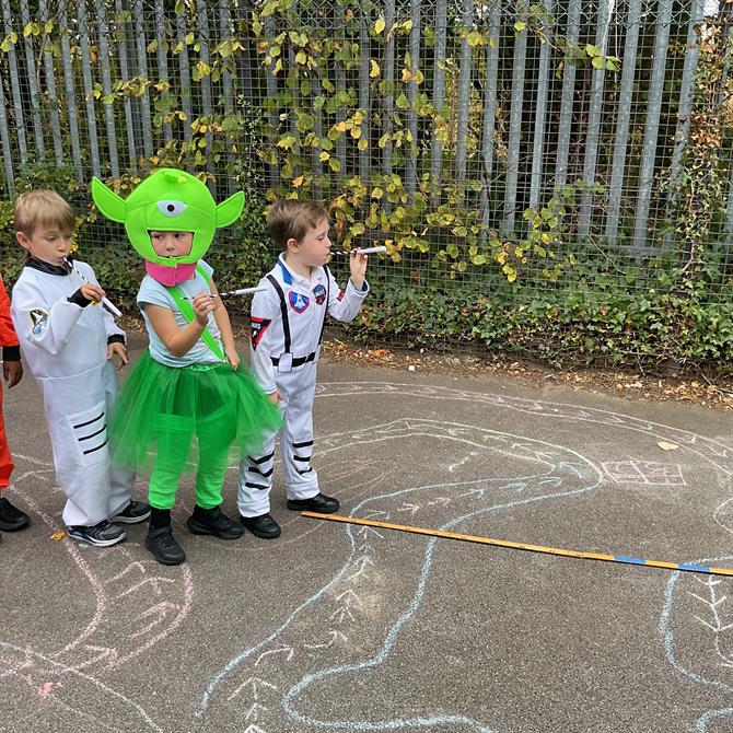 We really enjoyed Space day last week! We had great costumes and we enjoyed doing space related acitivities all day. We worked on creating the best rocket using straws and a paper rocket. We then had to test out how far out rockets flew. We then measured it against a ruler. We had to make sure that the rocket was the right shape and not too tight around the rocket or it would not launch.