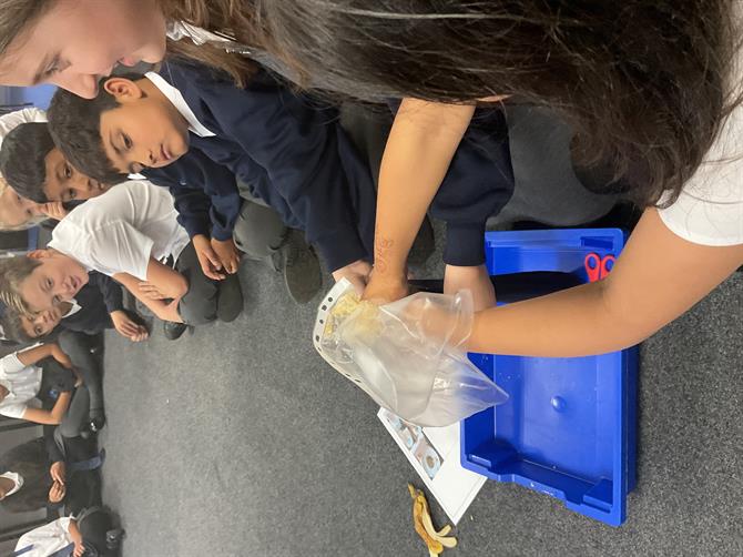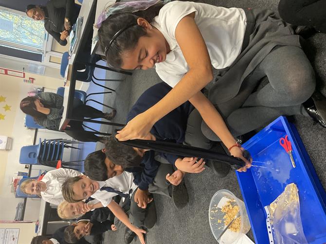 As part of our Remembrance Day activities, we used potatoes and paint to print poppy pictures, creating a thoughtful display to remember those who served. In science, we had lots of fun taking part in a reenactment of the digestive system to introduce our new topic — all about how our bodies digest food!