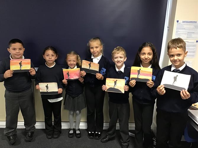 For Remembrance Day, we all made a beautiful silhouette picture of a solider standing on a hill with a sunset background. The children really enjoyed learning about the history of Remembrance Day and creating their art to be displayed in the school hall!