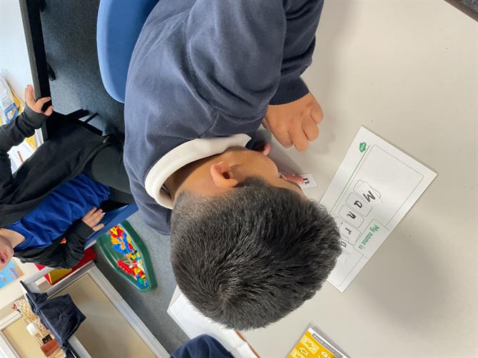 In Maths lessons we have been recapping language such as 'backwards' and 'forwards' when counting on a number track. This is something that we will continue to recap to help our mathematical language to develop over the year. We have also been linking numerals to the written form.