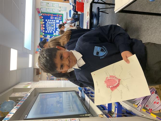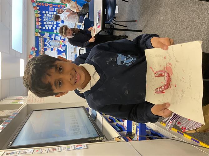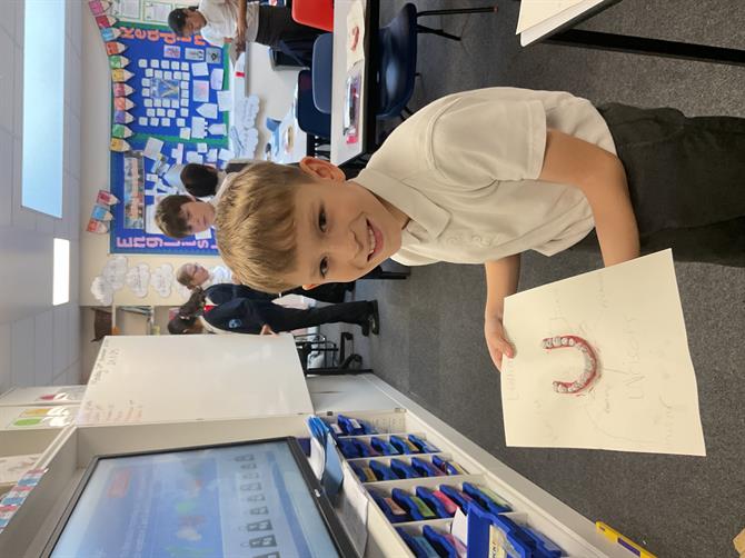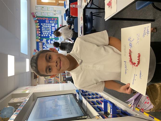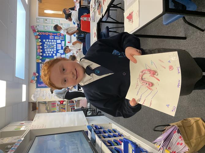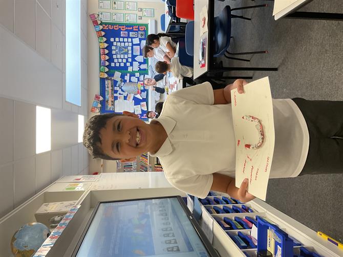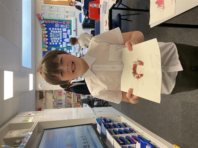In science, the children enjoyed painting their clay models of teeth. They then explored different animal skeletons, paying particular attention to the incisors, canines, pre-molars and molars. They compared similarities and differences and discussed how these features relate to the animal’s lifestyle and diet.