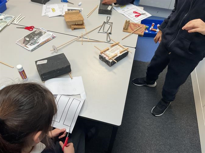 During D+T lessons we have been learning about wheels, axles and chassis and have been creating our own black taxi for Paddington to travel in! We have to paint boxes and add pegs to hold the axles. We also had to use elastic bands as washers to hold the wheels in place. It was quite a fiddly task! We used dowel rods and cut them to about 20cm to attach the wheels to the axle! We really enjoyed making our D+T projects.