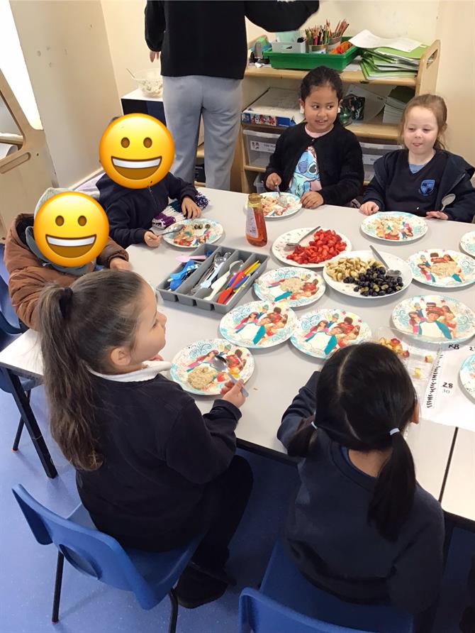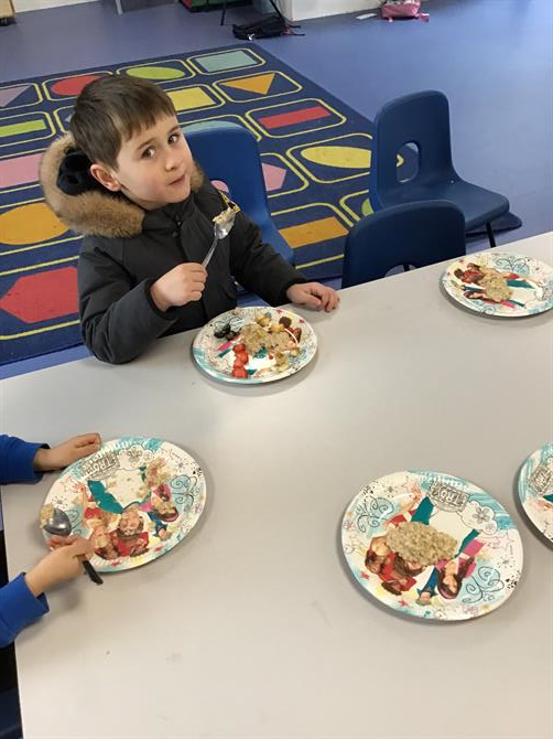This week, we have been reading the story of Goldilocks and the Three Bears! We have practised retelling the story in our own words and spoken about how the three bears might have felt. Today, we got to make porridge! We made our porridge and chose our own healthy toppings. It was delicious!