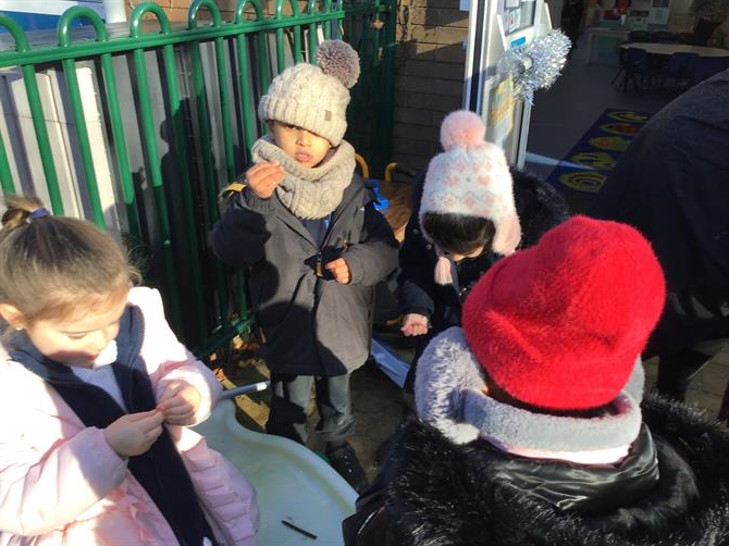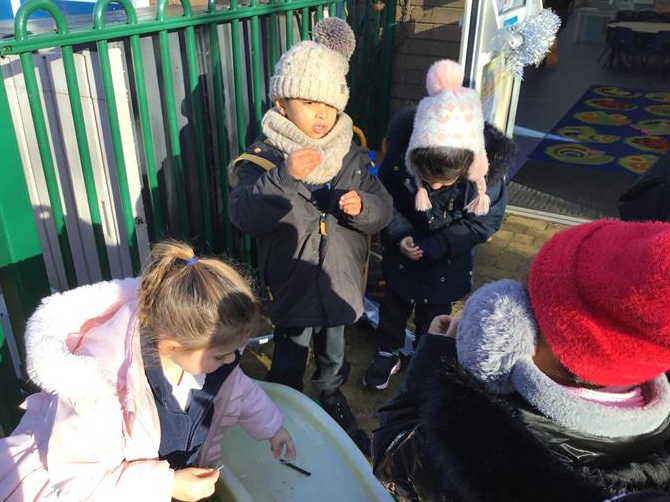 This week the children have been practising for the Christmas performance. They cannot wait to show you it next week. We hope that they have been singing their hearts out at home for you too! Also this week, the children have enjoyed taking part in Christmas crafts, making saltdough ornaments and exploring outside. The children were fascinated with the natural world and exploring a frozen puddle. It sparked lots of brilliant conversations and questions. We have been focusing on the letter 'i' this week.