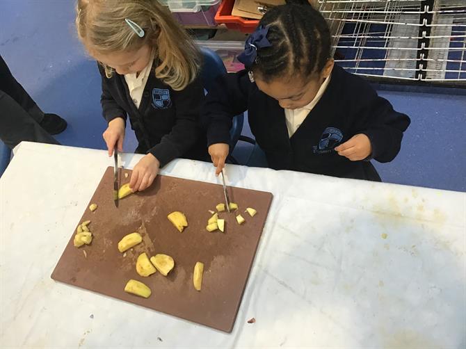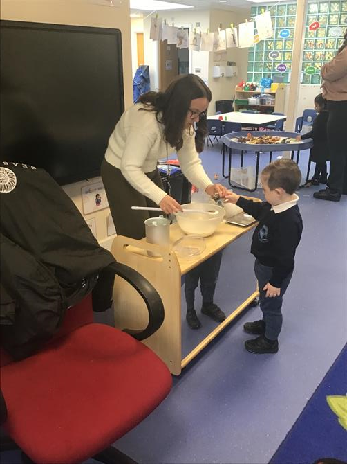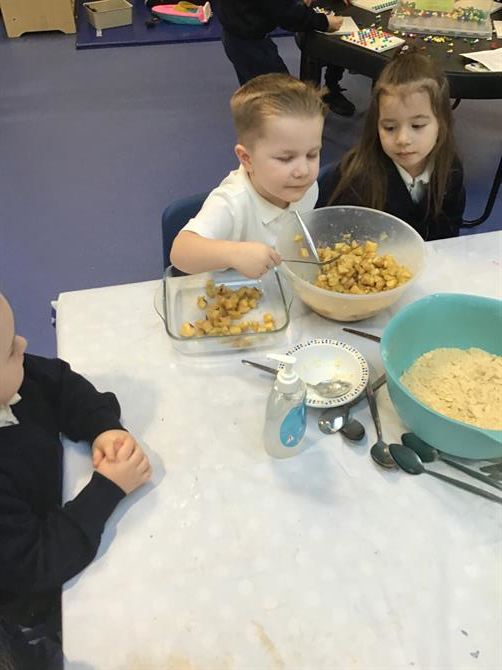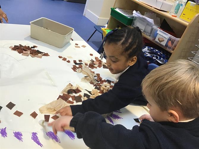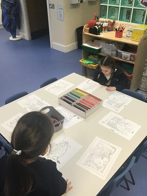 What a great week we've had! The children have enjoyed listening our focus story the Gruffalo's Child. This week the children made Gruffalo Crumble and owl ice cream. They enjoyed tasting the crumble and adding yummy toppings to their ice cream. Also this week they took part in collaborative art and helped each other to decorate the Gruffalo and the mouse with different textures. They looked brilliant! Our focus sound has been 'g' today.