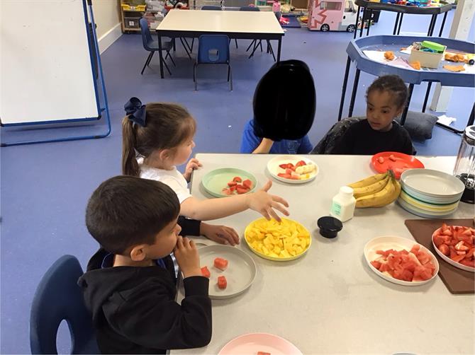 Welcome back to Summer Term! This week our focus story has been 'Oliver's Fruit Salad'. The children have been sorting fruits and vegetables, making yummy smoothies, trying new fruits and making their own fruit salads. The children have been practising their blending skills in Phonics too.