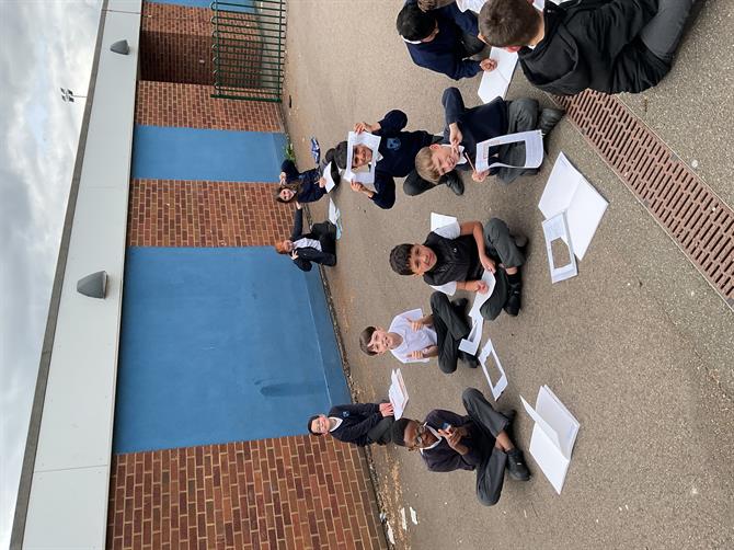 In Art, the children created beautiful landscape drawings using a viewfinder they created!