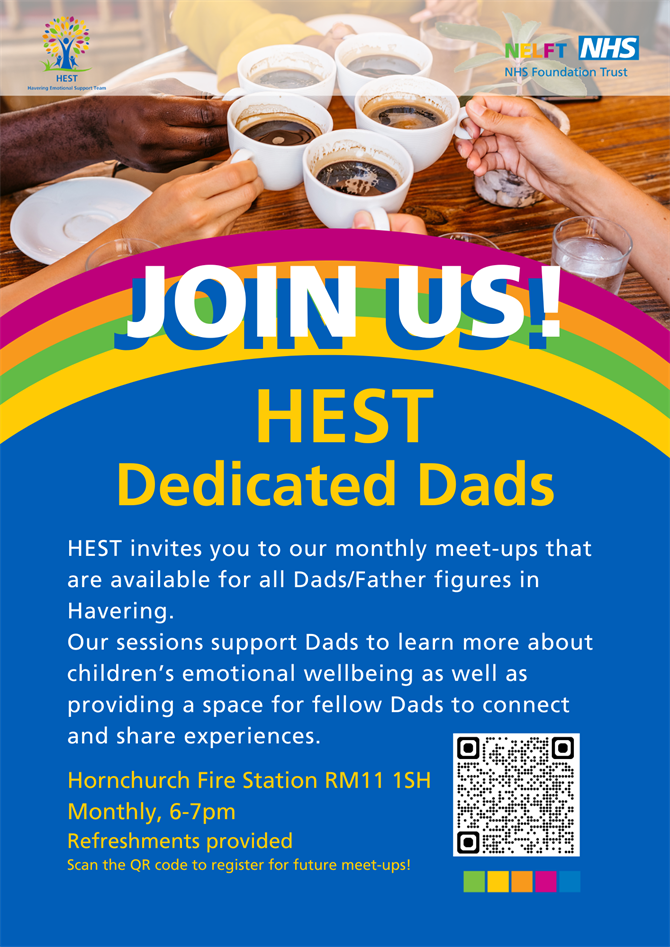 We do hope you have been well. Kind reminder that we have upcoming Dedicated Dads and free online HEST workshops for April, May, and a new workshop in June. We would be most grateful if you could forward the below and attached across your schools as they are for all parents across Havering. Please see below for more details on each event and how to sign up: