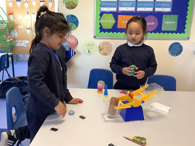 In Maths, we have been using water and sand to measure the capacity of different containers. We also used balancing scales to compare the mass of different objects. The children predicated which would be heavier and/or lighter!