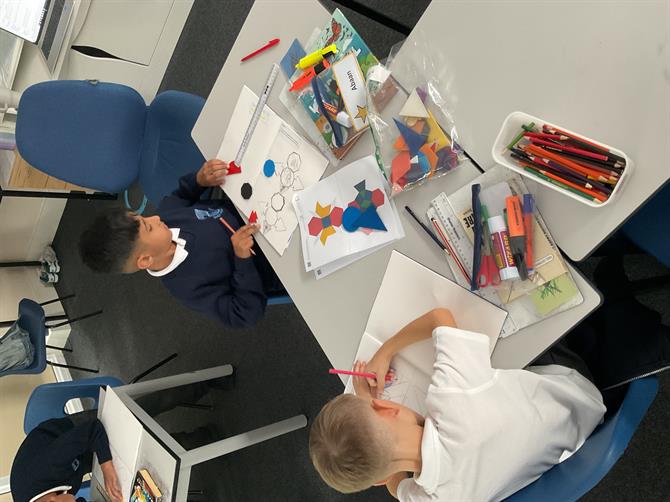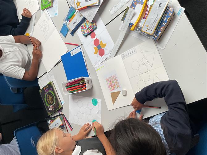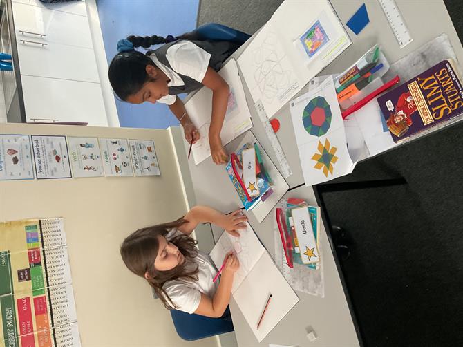 In art, we have started our new topic Islamic art. We have created our geometric patterns.