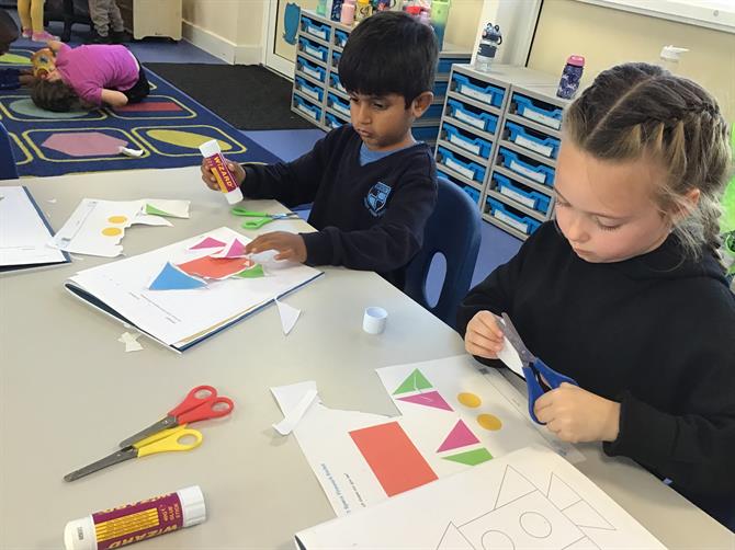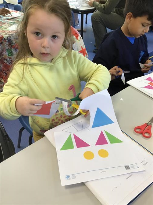 We have had an exciting week learning about 2D- shapes and their names. Pupils used the 2D-shapes to create a rocket ship. Next week we will be matching shapes using buttons.