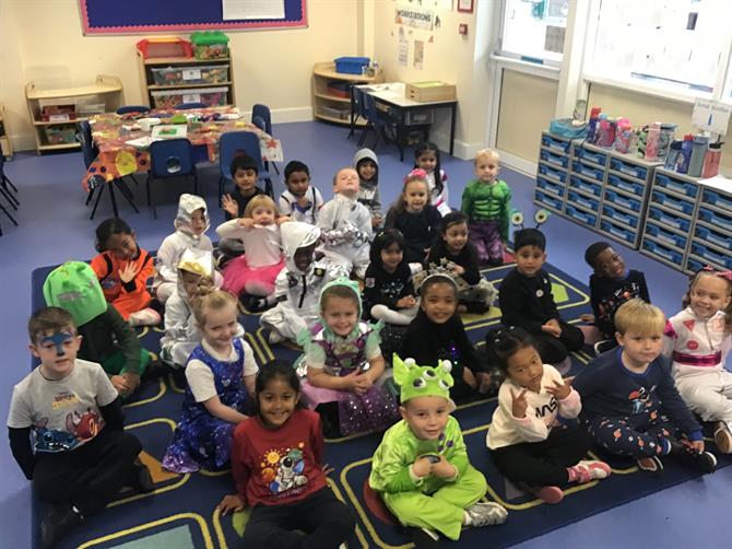 Everyone took part in making an Alein face and we all took part in an experiment which included mixing Bicarbonate of soda and vinegar to watch an explosion take place just like a rocket! All pupils thoroughly enjoyed space day and we loved seeing everyones costumes!
