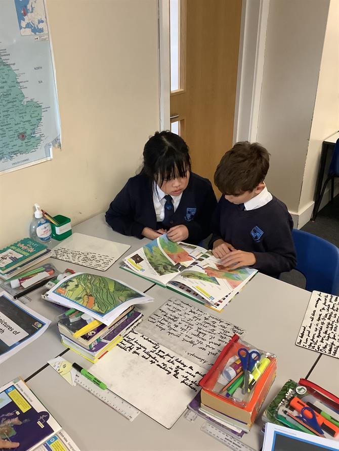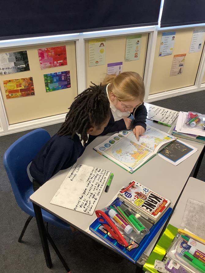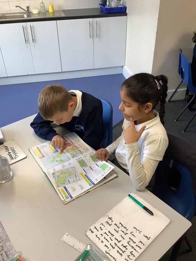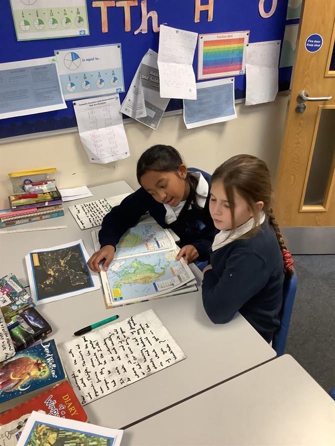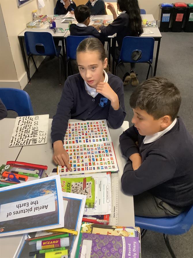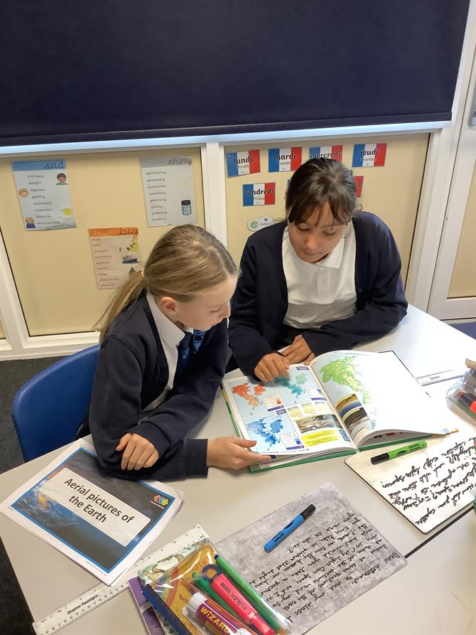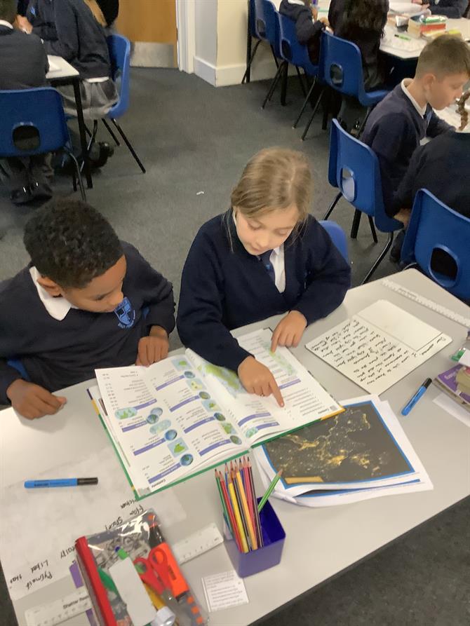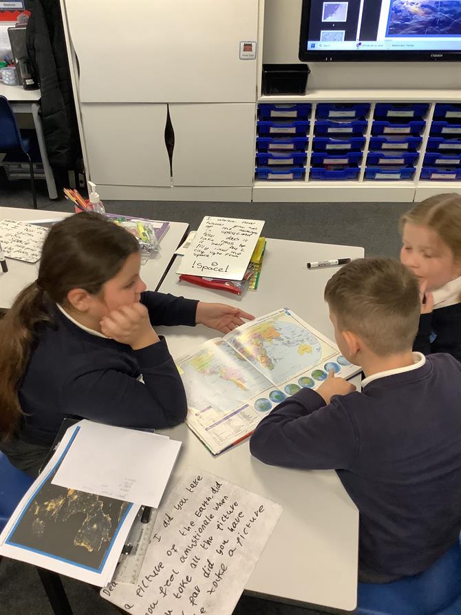 This week we also had a Geography lesson, linked to Stargazers. In this lesson, we looked at different aerial images of the earth, taken from a satelitte in space. The images included the pyramids of Giza, Europe at nightime and the Grand Canyon. We also used atlasses to locate these different places, and we were shocked by the children's amazing knowledge of world geography!