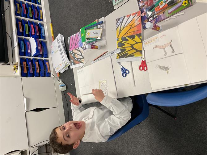 In art, we made our own butterfly pattern stamps for our topic animals.