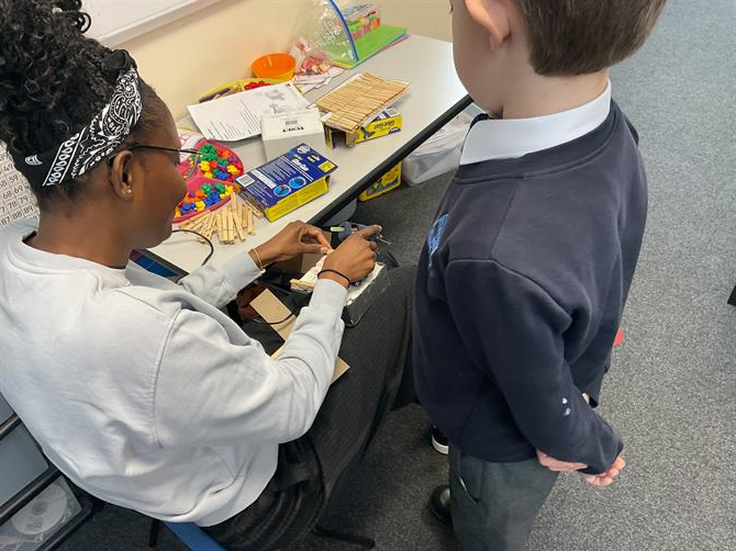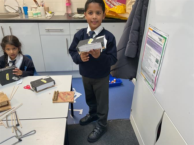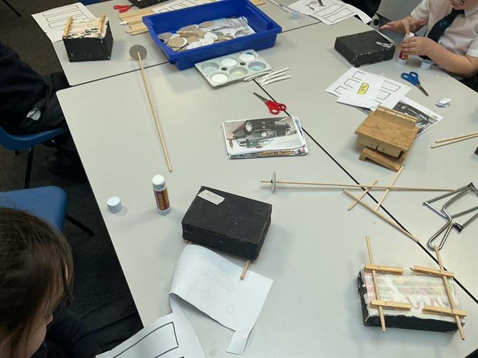 During D+T lessons we have been learning about wheels, axles and chassis and have been creating our own black taxi for Paddington to travel in! We have to paint boxes and add pegs to hold the axles. We also had to use elastic bands as washers to hold the wheels in place. It was quite a fiddly task! We used dowel rods and cut them to about 20cm to attach the wheels to the axle! We really enjoyed making our D+T projects.