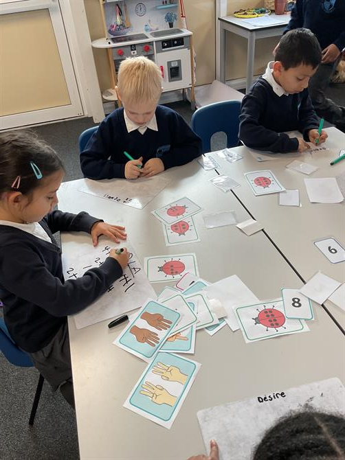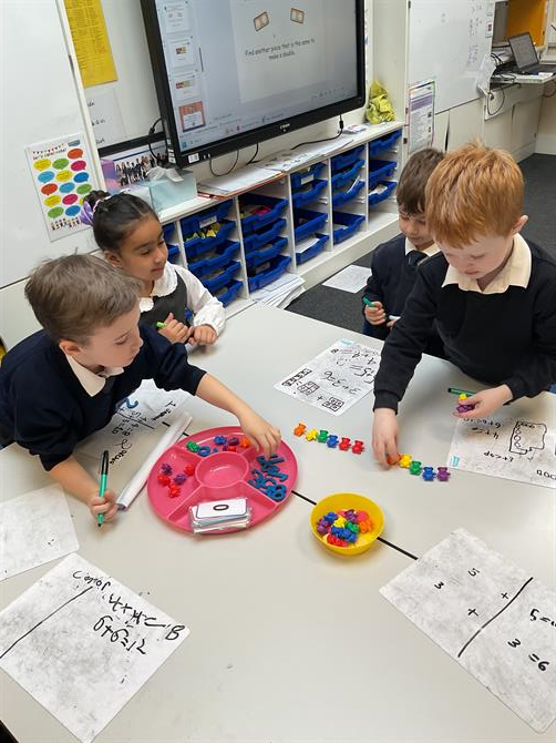 We have been working on learning our number bonds to 20 in Maths this week. During Friday's Maths lesson, we were creating doubles and representing these in pictures. We picked a card and made sure that we added the same number together to find the double e.g. 7 + 7=14.