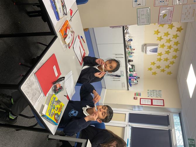 In science this week, the children created their own paper straw harmonicas, shakers and rubber band guitars. They worked together to find out how to change the volume and the pitch of these instruments.