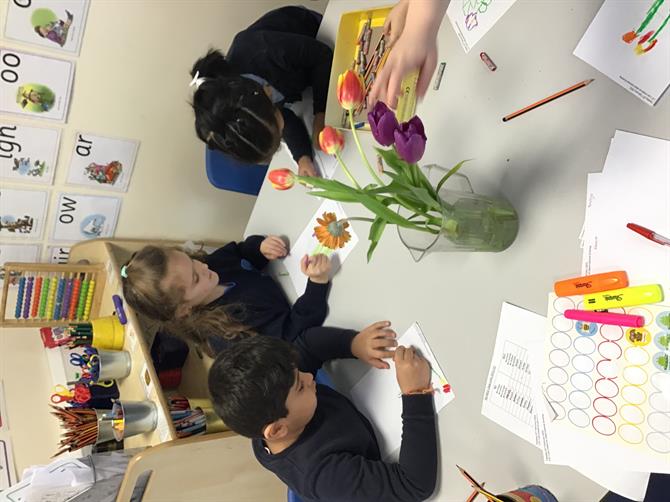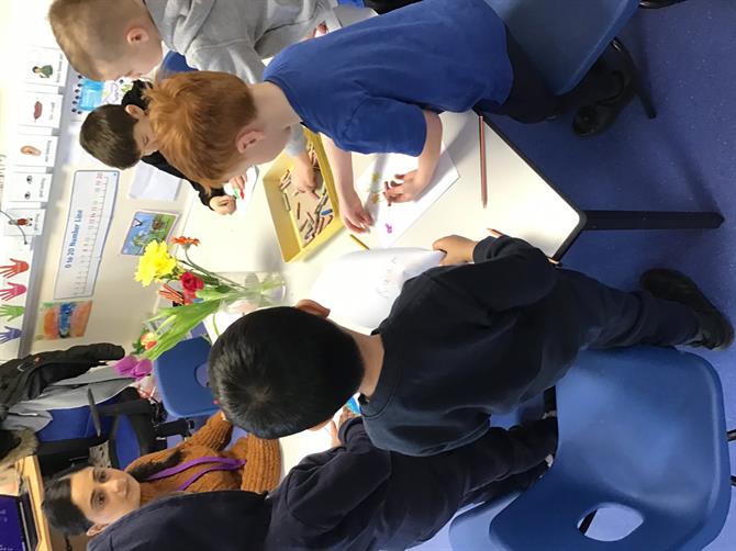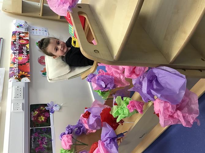 This week we have been creating a garden centre cafe and a florist shop in our classrooms. We have been busy collaging, painting and creating flowers to sell. We have been learning the technical names for the parts of a flower and their function. We have read Erroll’s garden and are beginning to plan our school garden. Please remember any garden donations are welcome :) We have made some amazing observational drawings of flowers too, using oil pastels.
