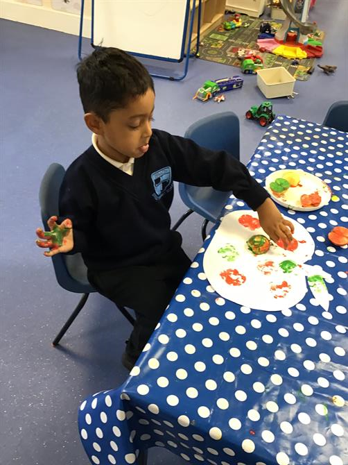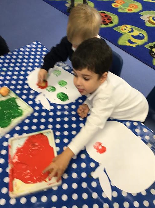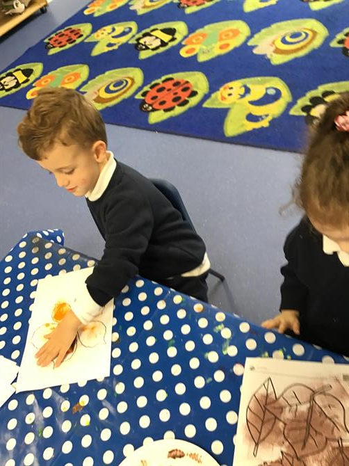 What a great week it has been! This week we have been reading Little Red Riding Hood. The children have been playing with the woodland themed tuff tray, creating autumn sponge paintings, decorating a hedgehod with leaves collected from the garden and size ordering.