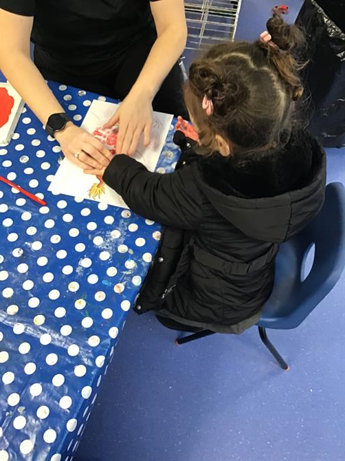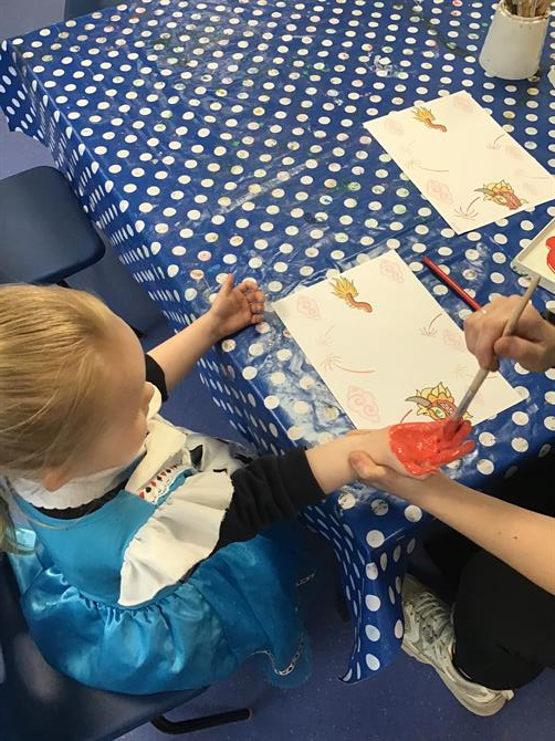 The children have been decorating lanterns with red and gold tissue paper, they made handprint dragons and beautiful blossom trees using their fingers. They have also enjoyed our new construction area in the garden. The children became builders, repairing and building things around the nursery! Also this week the children have been matching numerals to amounts and counting beyond 5.