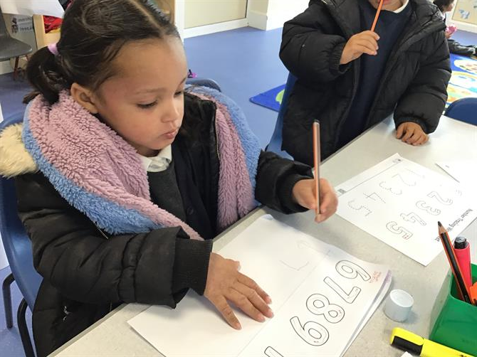 We hope you all had a great half term! The children have come back to Nursery with such enthusiasm which has been lovely. This week we have been reading our focus story 'Ten Little Fingers and Ten Little Toes.' They joined in with the repetitive phrases. The children have been talking about their families and creating self portraits. They carefully looked at their facial features then painted themselves. We have also been doing lots of number work this week. The children have been identifying numerals, matching them to amounts and showing the amounts on their fingers. We have also enjoyed some of the sunshine in the big garden. The children have been developing their gross motor skills on the bikes and scooters and climbing up the climbing frame. The children have been learning the sounds 'e' and 'l' this week too.