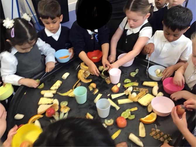 Welcome back to Summer Term! This week our focus story has been 'Oliver's Fruit Salad'. The children have been sorting fruits and vegetables, making yummy smoothies, trying new fruits and making their own fruit salads. The children have been practising their blending skills in Phonics too.