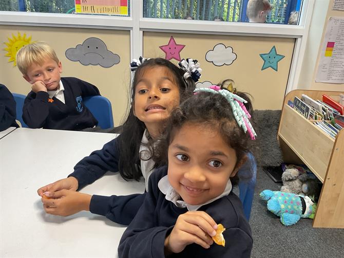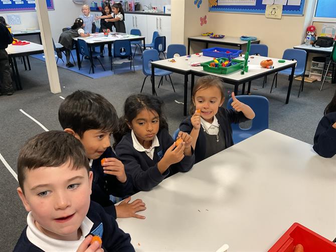 We have been creating addition and subtraction calculations using physical resources to help us to complete the calculation- we love using numicon to find the numberbonds. During Science lessons, we have been using our senses to smell and taste different food. We know that we five senses that we use to smell, taste, touch, hear and see.