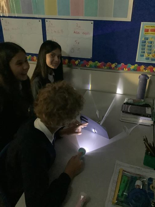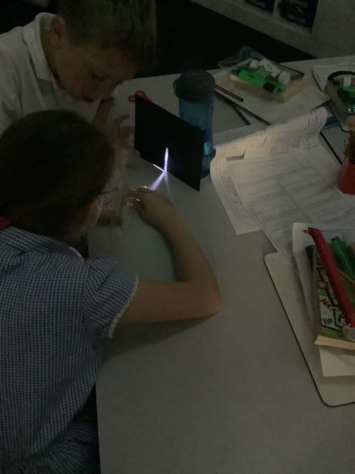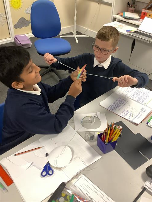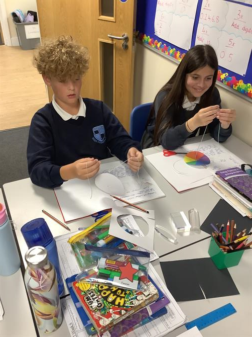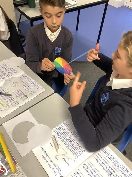 For Science this week we looked at refraction. We used prisms to try and create a rainbow by refracting light and made our own Newton's colour wheel.
