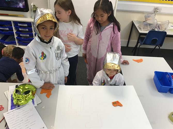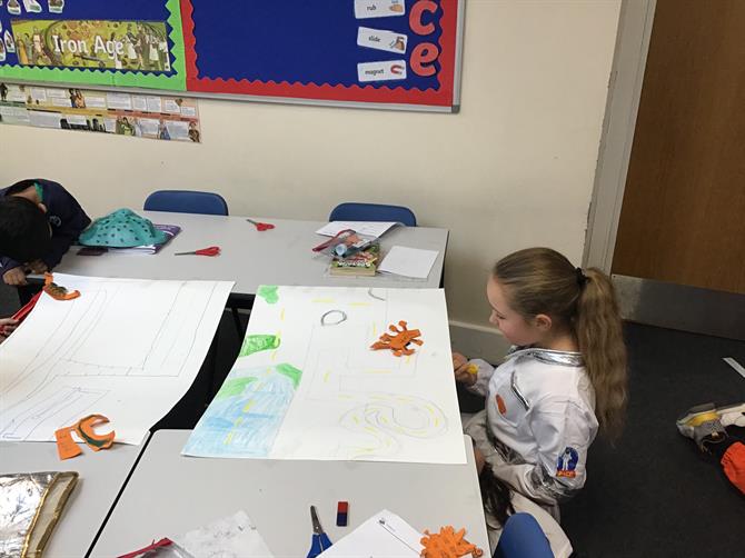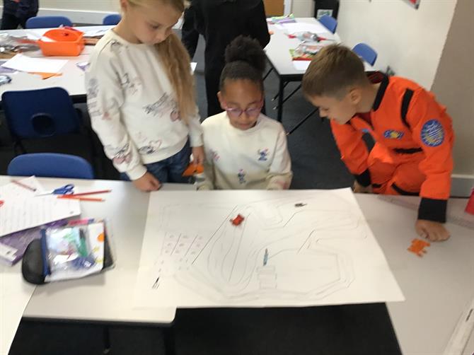 In science, we celebrated space day by creating our own Mars Rover! We created a maze for our rover to go through and used magnets to see how long it would take us to navigate our way through the maze!